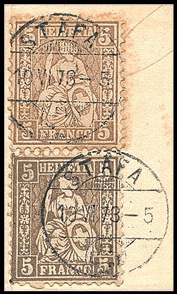 | 1878, 40 Rp. grau + 5 Rp. braun (Zst. Nrn. 30 + 42),