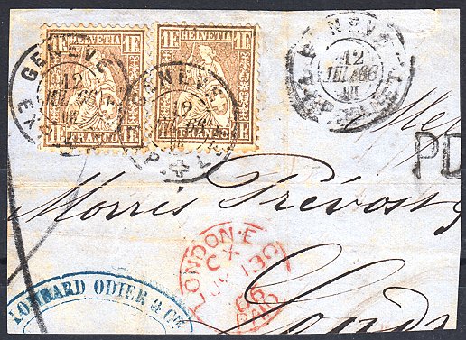 | 1863/67 70 Rp. Nachnahme-Frankatur (Zst. Nrn. 32 + 43,
