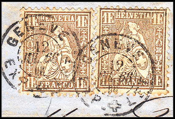 mit zwei Stück 1 Fr. goldbronce rötlich (Zst. Nrn. 36a,