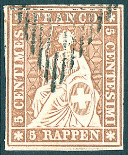 | 1857 5 Rp.-Strubel, schwarzer Seidenfaden (Zst. Nr.