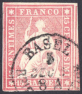 | 1857 Strubel 15 Rp. Berner Druck III (Zst. Nr. 24D,