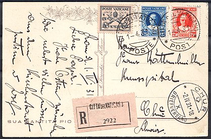 frankiert mit Mi. Nr. 22 und Vatikan Nr. 188, der
