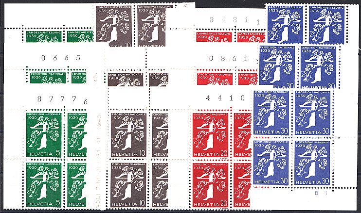 | 1949 Post/UPU (Zst. Nrn. 291-296, Mi. Nrn. 519-524), beide Serien komplett in Viererblocks, sauber postfrisch **, fehlerfrei | CHF 10.-- |