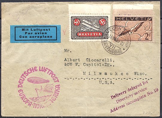 | 1929 1. Amerikafahrt, Schweizer Zuleitung